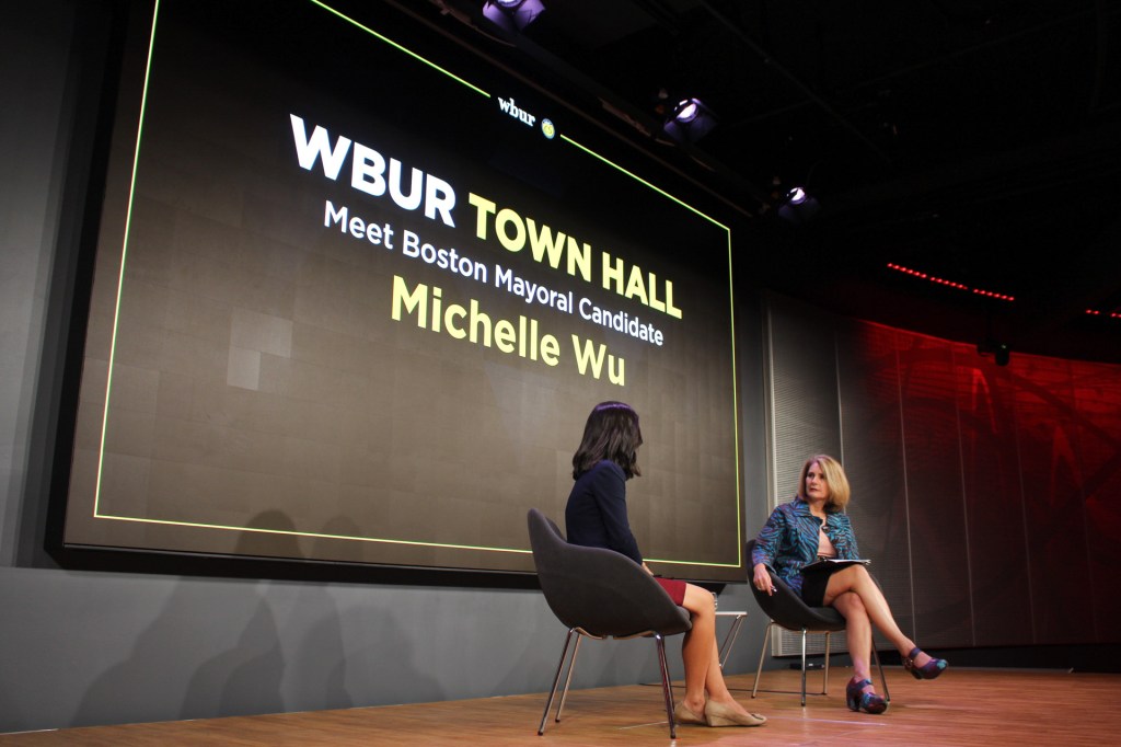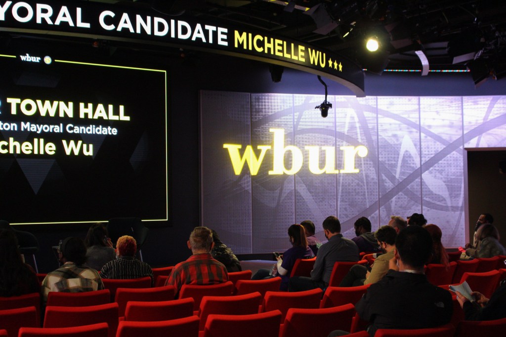 “Meet Mayoral Candidate Michelle Wu,” read the lit-up banner that spanned the width of the WBUR CitySpace on Monday evening of Oct. 18, just weeks before the climactic Election Day. Bostonians still in the day’s business casual, students sporting beaten backpacks and supporters clad in matching purple T-shirts trickled into the auditorium for a town hall with Wu.